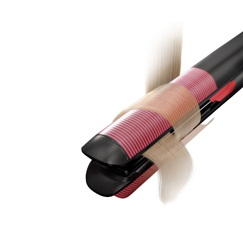 Крім того, відзначимо, що модель оснащена системою Pulse Frequency System – безліч датчиків, які з високою частотою контролюють температуру та рівномірність нагрівання пластин до заданих налаштувань. Неважливо наскільки густе чи товсте ваше волосся або як швидко ви працюєте – випрямляч буде підтримувати максимально точну температуру нагрівання пластин протягом усієї роботи, щоб результати були максимально бездоганними, а вам знадобилося мінімум проходів по пасму волосся.