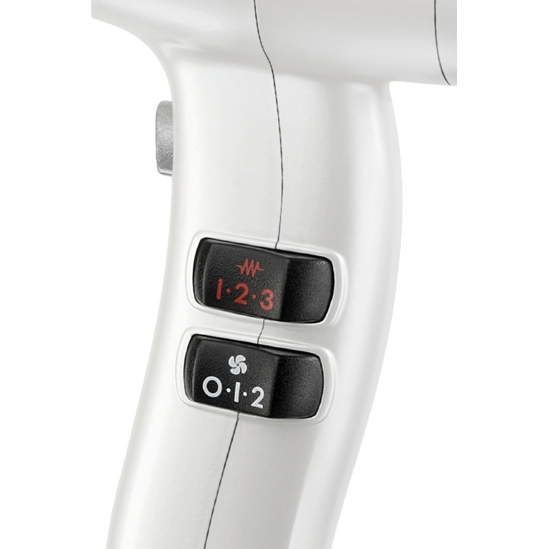 Модель Valera MP 3.0X RC PW сделана в стандартном типоразмере корпуса, имеет превосходную балансировку по весу и хорошую эргономику. Удобная стильная ручка модели значительно повышает комфортное использование. Говоря о комфорте отметим, что кнопки управления режимами расположены сбоку, что будет комфортно для работы правой рукой. Модель имеет 2 скорости и 3 температурных режима, что в совокупности дает пользователю 6 настроек для работы. Есть отдельная кнопка «холодного обдува» для фиксации прически, а так же петелька для подвешивания фена. Съемный фильтр позволит легко ухаживать за мотором и очищать его крыльчатку от волос. Отметим, что корпус фена изготовлен по технологии SANIFY Sanitizing System и имеет антибактериальное покрытие.