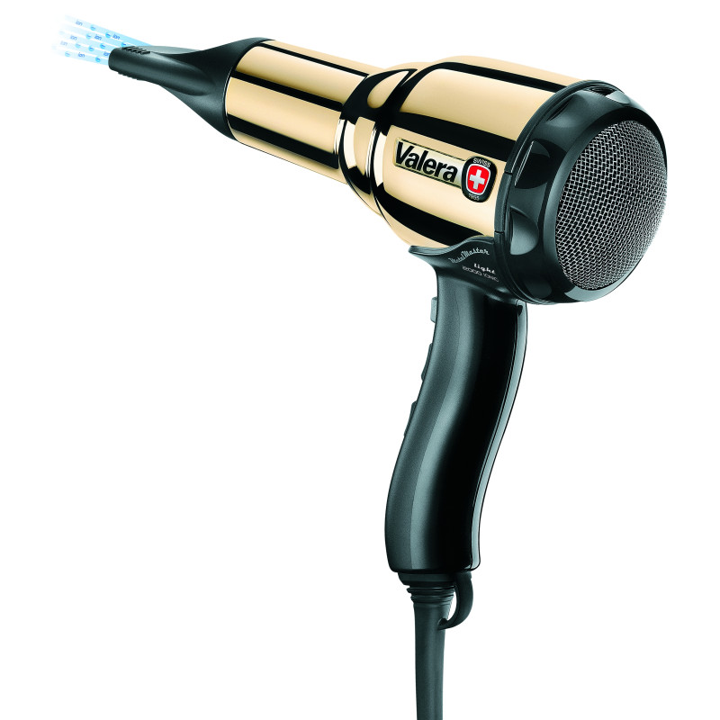 Swiss Metal Master – серия профессиональных фенов для волос выполненных в металлическом корпусе, в которую входит модель Valera Swiss Metal Master Light Gold (584.01/I). Великолепный яркий дизайн в удлиненном корпусе, легкий вес и хорошая производительность, наличие современных технологий защиты волос и отличная функциональность – все это чудесным образом сочетается в данной модели.