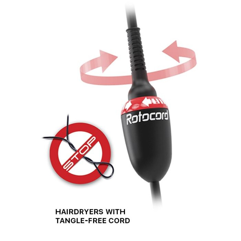 Rotocord – запатентованная система вращения сетевого кабеля, что обеспечивает более легкую и комфортную работу. Специальное устройство обеспечивает вращение кабеля на 360 градусов, поэтому Вы никогда не запутаетесь в проводах во время работы с феном.