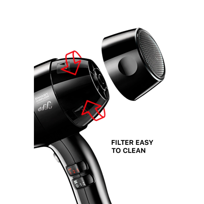 Sanify System – это специально разработанная антибактериальная система, которая основывается на применении специальных технологий, которые помогают очищать воздух. Это актуальная тема, поскольку фены на работе и дома практически никогда не очищаются, а различные пыль и загрязнения постепенно оседают на внутренних компонентах устройства. К тому же внутри помещения всегда больше бактерий и микробов в воздухе, чем на улице. Испытания независимых лабораторий подтвердили, что SANIFY System дает значительные антибактериальные результаты, улучшающие качество воздуха, тем самым обеспечивая обдув волос чистым воздухом, что, несомненно, отразиться на качестве сушки и здоровье волос в целом.